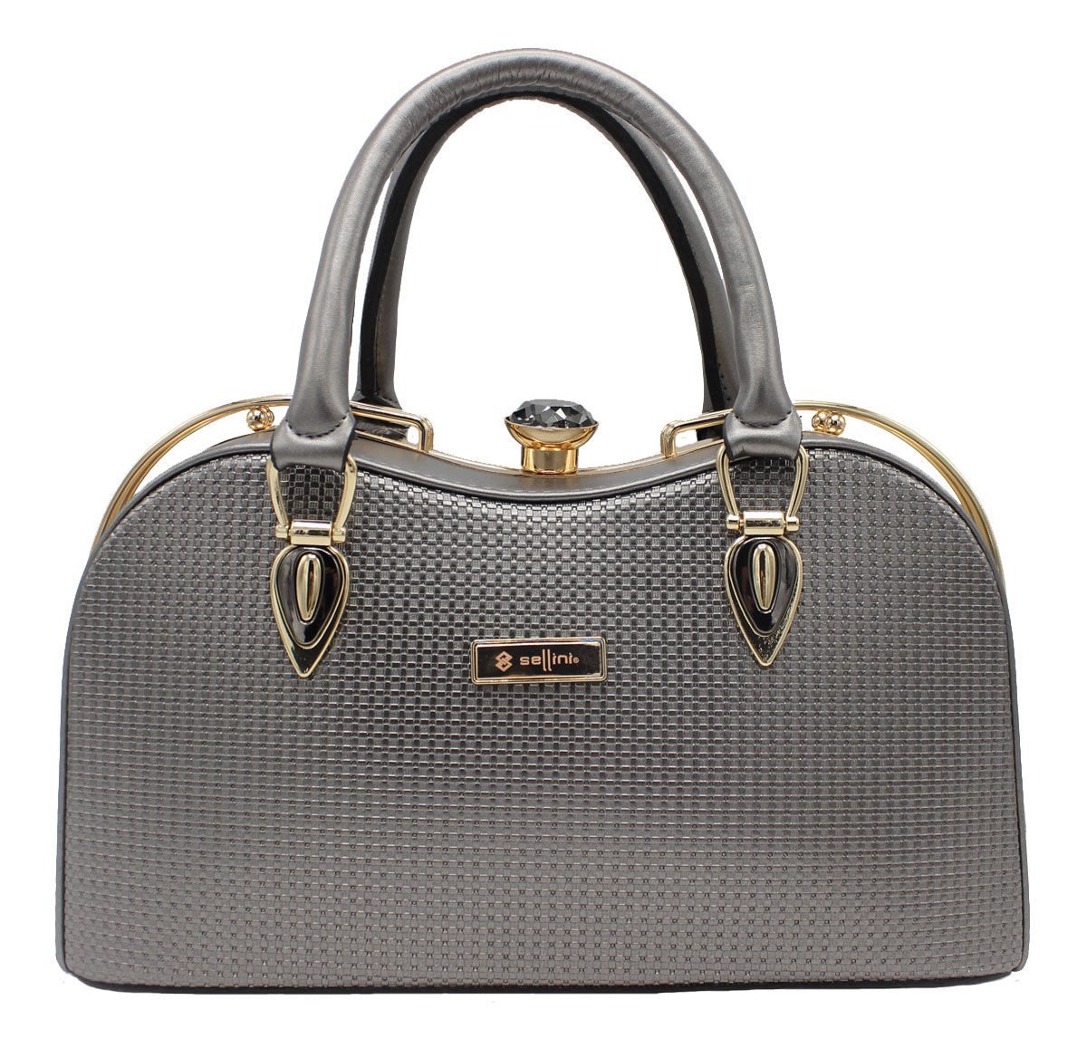 Burslu Petek Gri Kadın El,Omuz ve Çapraz Çanta 502