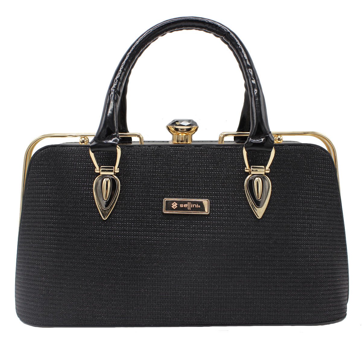 Burslu Simli Siyah Kadın El,Omuz ve Çapraz Çanta 503