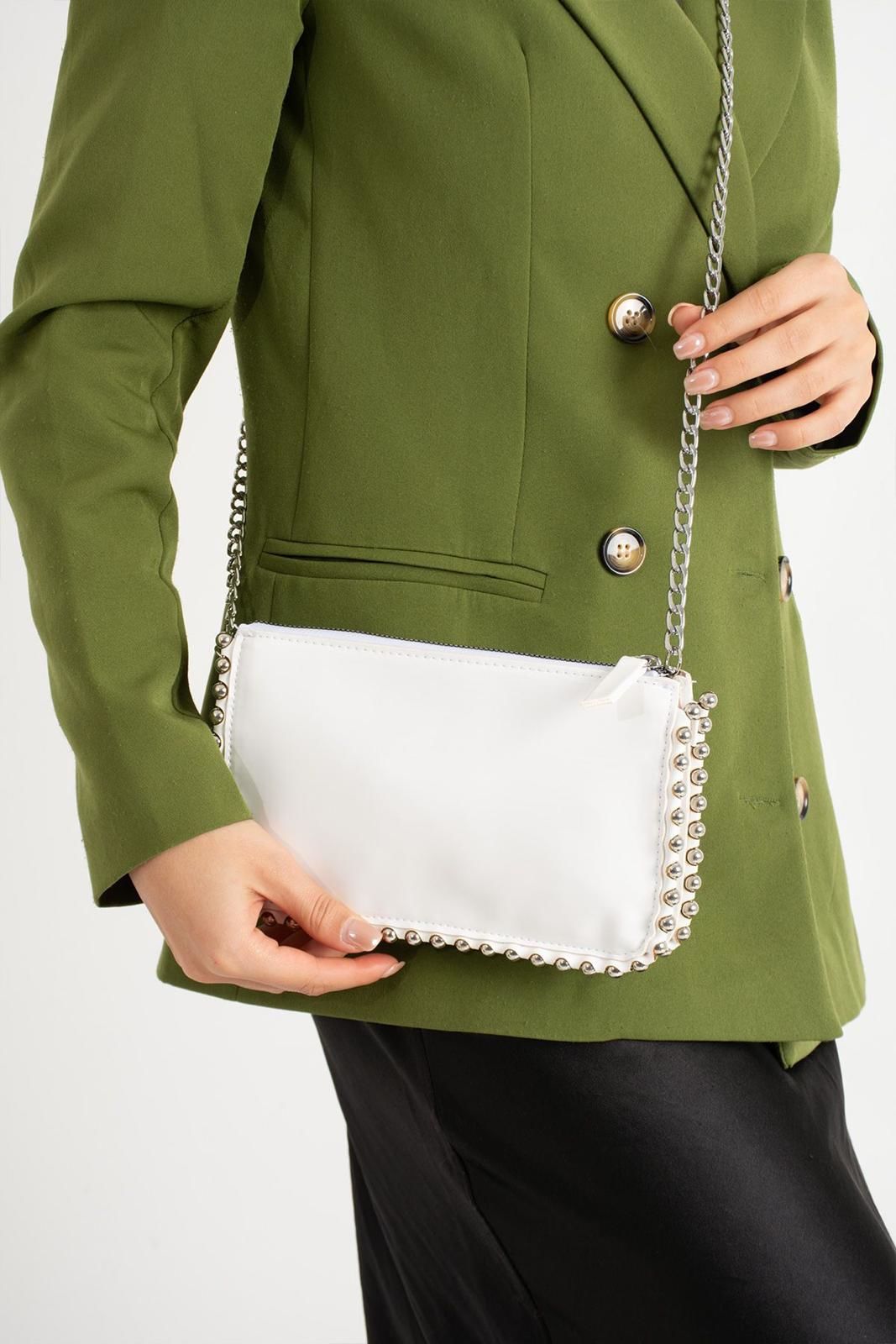 Sellini Kadın Beyaz Zincirli Omuz ve Kol Çantası
