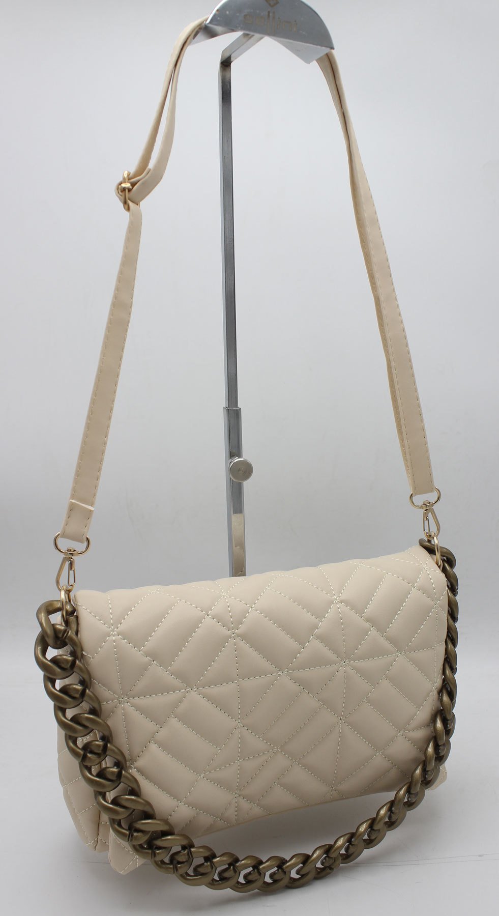 Zincirli Kapitoneli Krem Kadın Omuz ve Çapraz Çanta 270